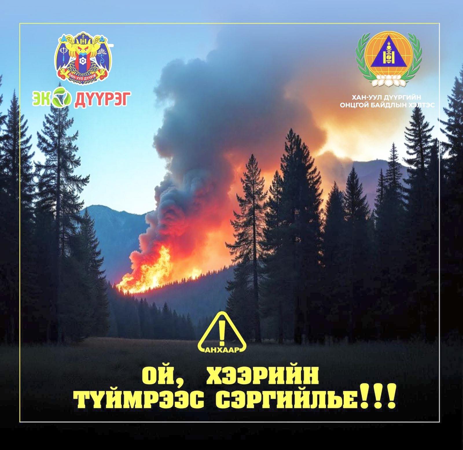 Хэт халалт, хуурайшилт ихтэй байгаа нь ой, хээрийн түймэр гарах эрсдэл өндөр байгаа тул: