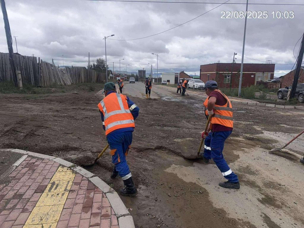 Тохижилт үйлчилгээний 40 компанийн нийт 1150 ажилтан 102 тусгай зориулалтын машин, техниктэйгээр нийтийн эзэмшлийн гудамж талбай болон үерийн улмаас зам руу орсон лаг хагшаас, хогийг цэвэрлэж байна.